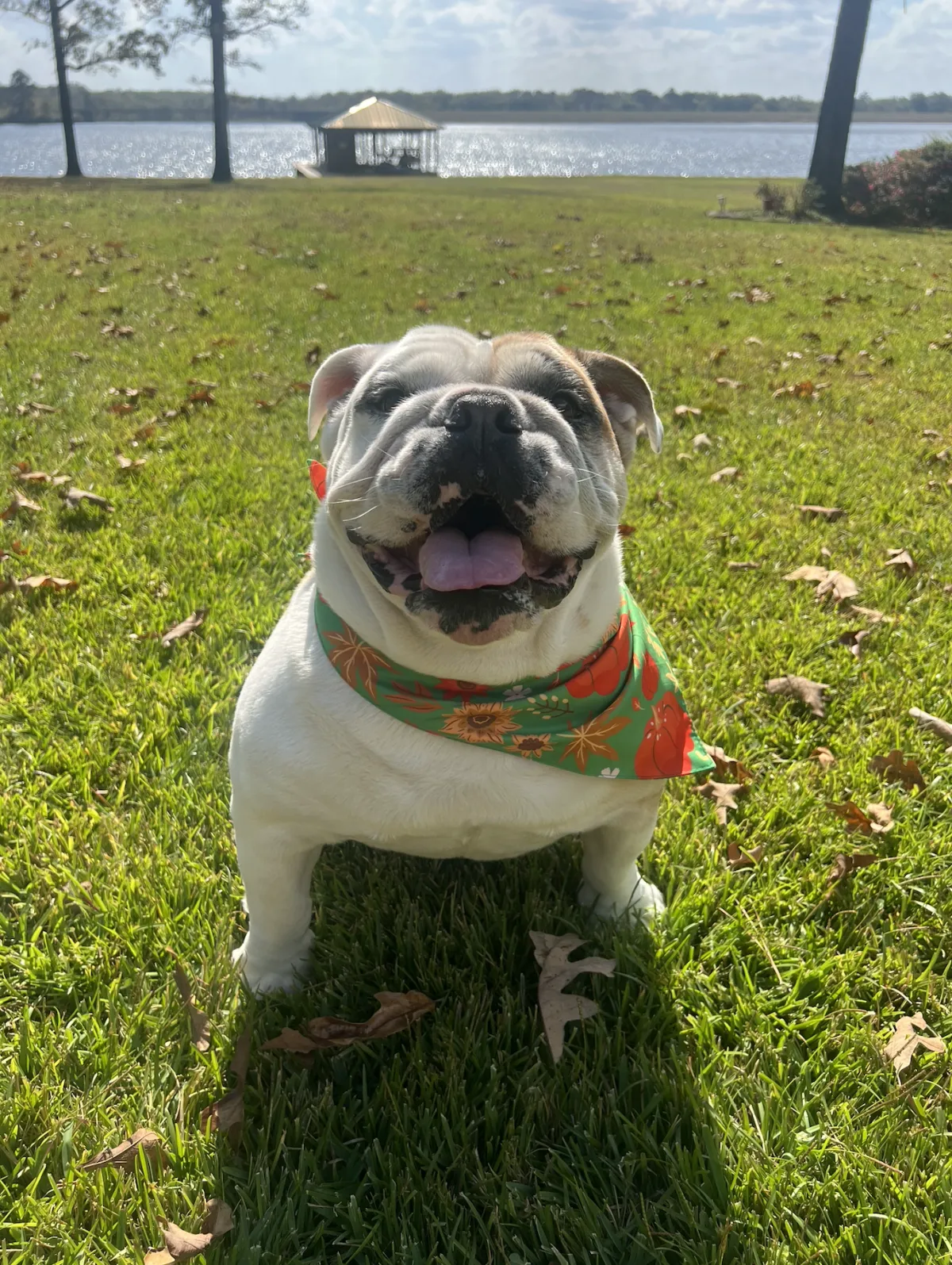 Gus Gus is our English Bulldog, and let me tell you—he’s equal parts chaos and charm. He’s got the energy of a toddler who’s just discovered sugar, paired with a face that’ll make you forgive anything. Whether he’s zooming around like the Tasmanian Devil, snoring like a freight train, or demanding belly rubs with zero shame, Gus keeps life interesting.
